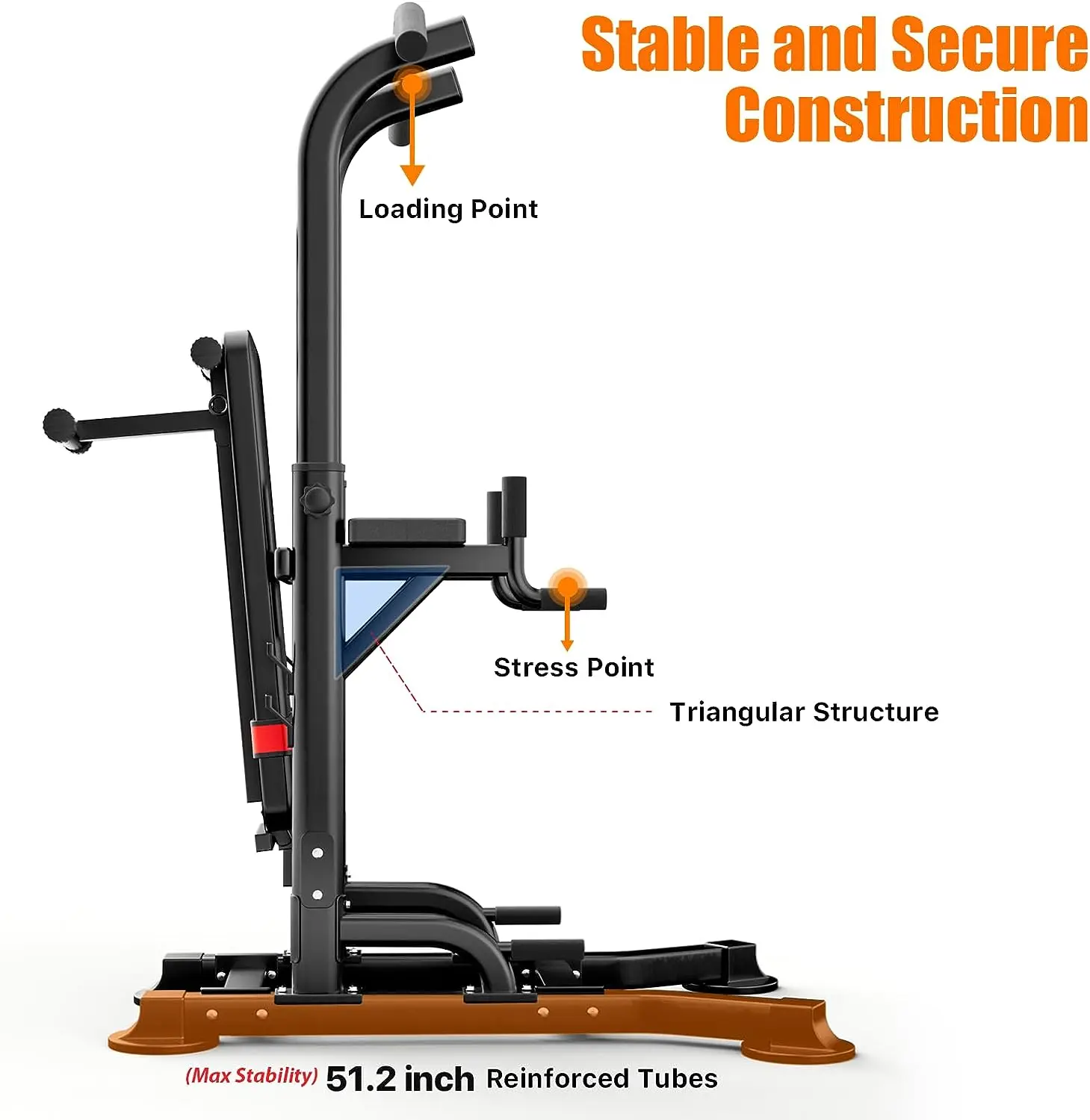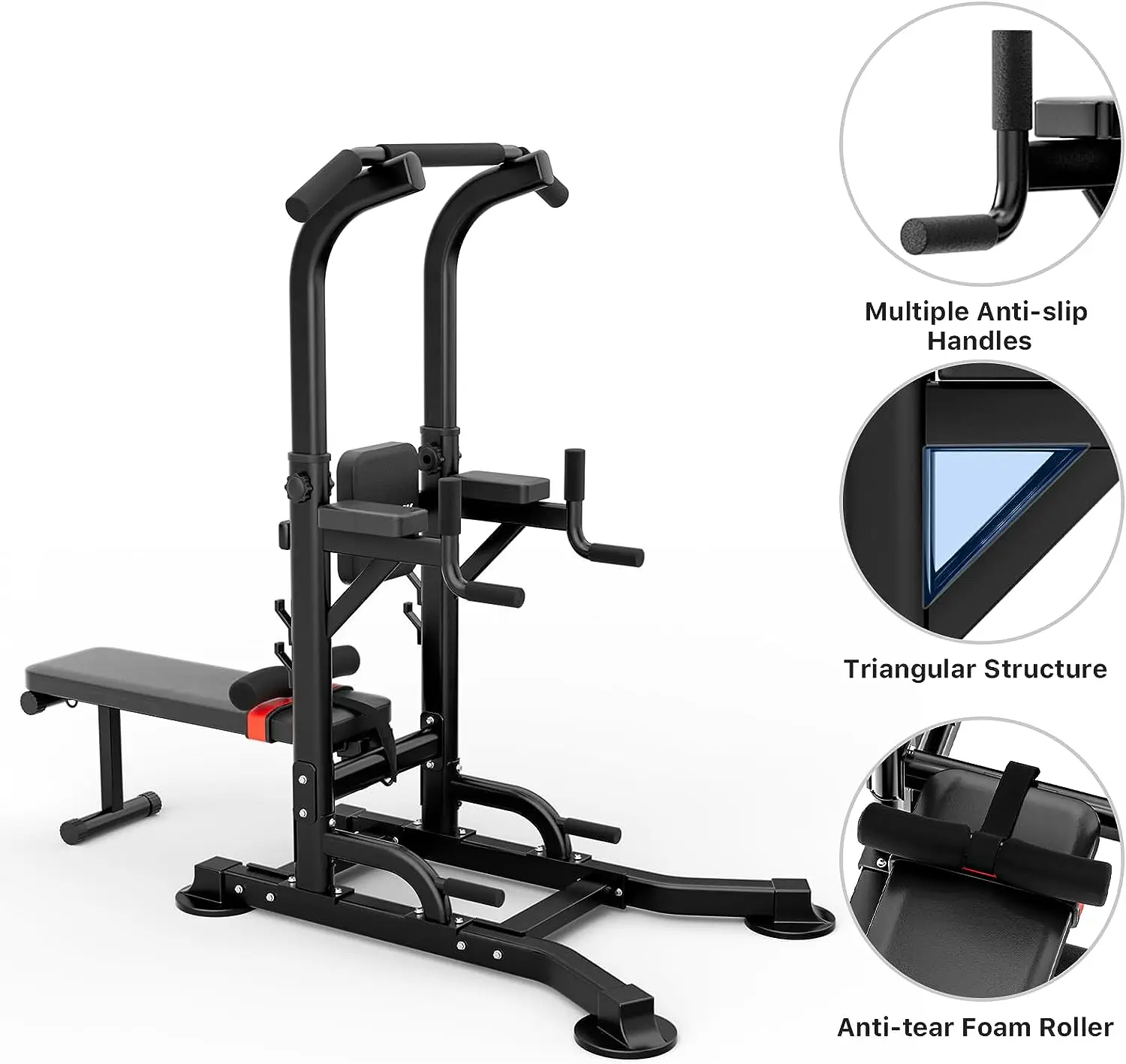 ????【Multifunctional and Space-Saving】Our power with a detachable weight bench is ideal for various exercises such as pull-ups, vertical knee raise, bench presses, dumbbell rows, push-ups and more. The bench can be fixed by the bolts in a specific position as you and be folded up easily when not in use to save your floor space.